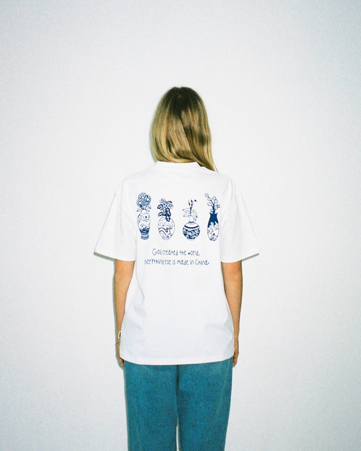 Baine Vase tee with short sleeves and round neckline. Small print on the side and big vase print on the back Casual fit made from 100% organic cotton