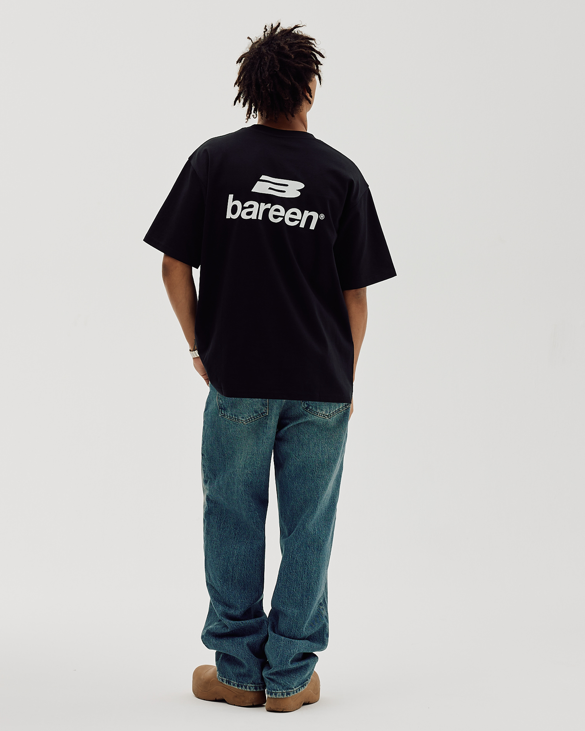 Bareen Box Fit Heavy - Black er en oversized T-shirt med boxy pasform, droppede skuldre, korte ærmer og rund hals. Den er syet i tung økologisk bomuld i høj kvalitet, så stoffet føles solidt og falder pænt.