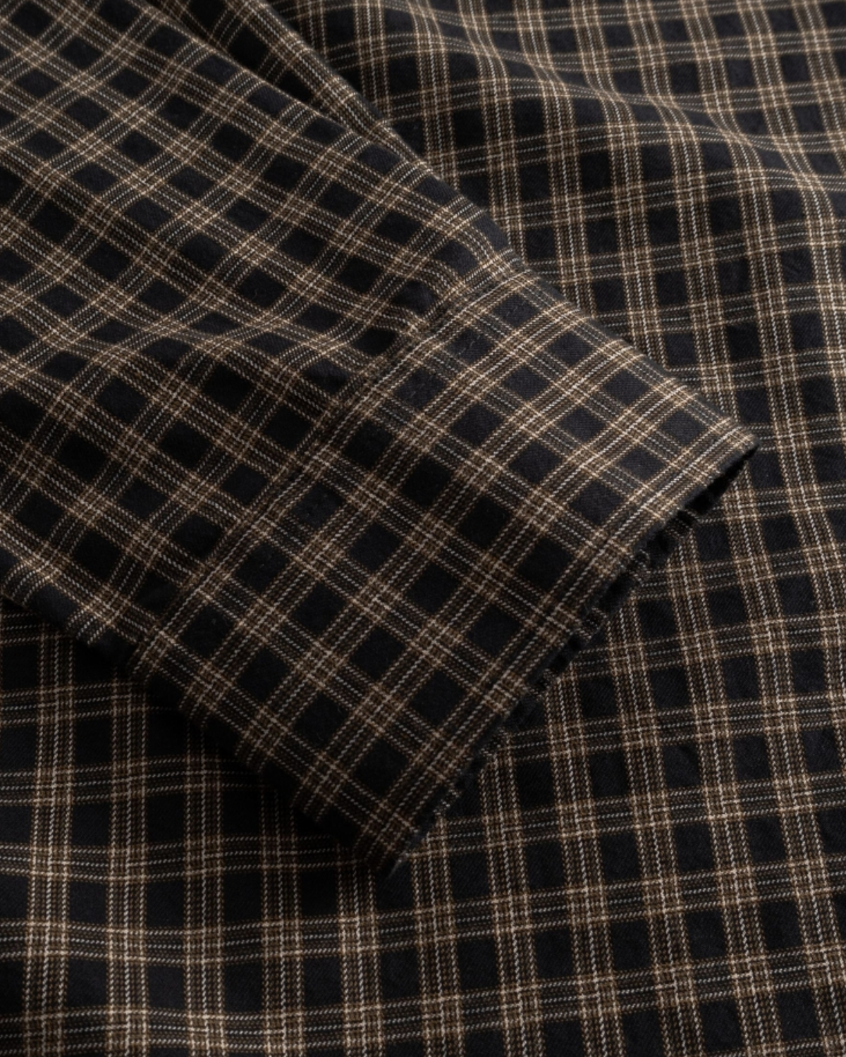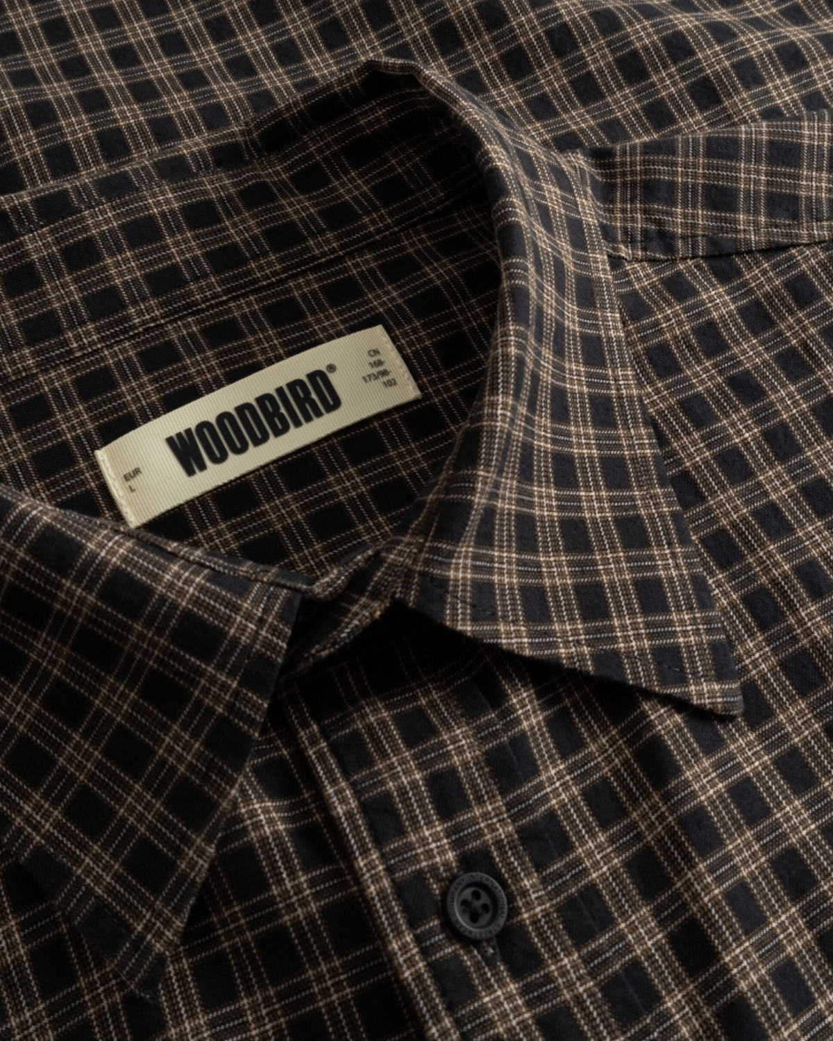 Buzo Hang Check Shirt - Black Check fra Woodbird er en langærmet Skjorte i 100% økologisk bomuld. Stoffet er blødt og åndbart, og de sorte tern giver et roligt, klassisk look. Pasformen er bred og afslappet med en lidt kortere længde, så den får en oversize silhuet med et velafbalanceret snit. Brystlommen sætter prikken over i’et og holder fast i den kendte skjorteform.