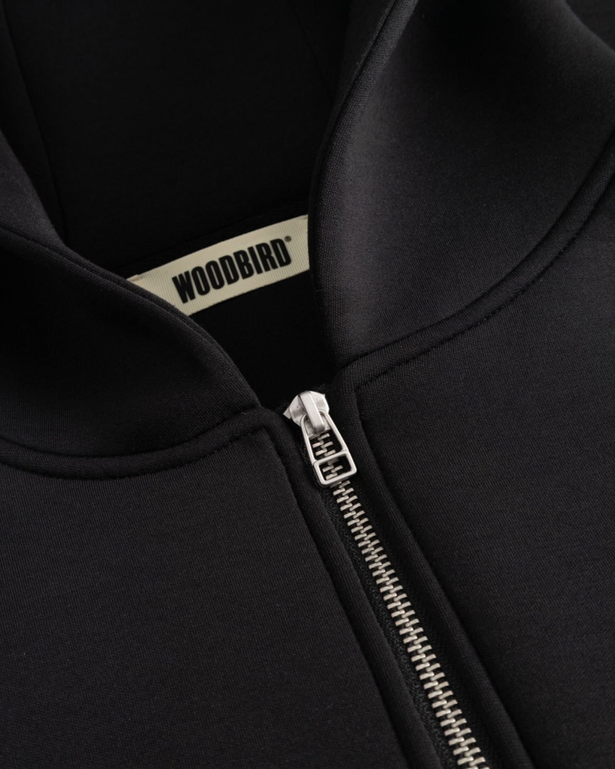 Fuji Scuba Zip Hoodie - Black fra Woodbird er en enkel og velsiddende zip-hoodie i sort. Lynlås foran gør den nem at bruge i hverdagen, og materialet føles blødt med en let, fast struktur, så den holder formen uden at blive tung. Det rene, moderne look gør Fuji Scuba Zip Hoodie - Black til en af de Trøjer, der passer ind næsten overalt.