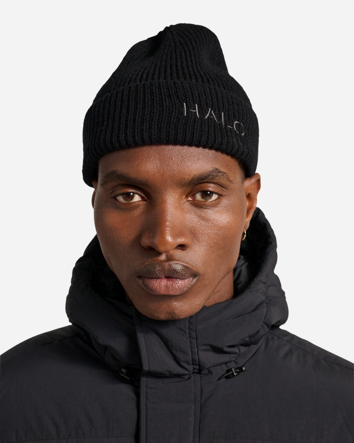 Halo Wool Rib Beanie - Black