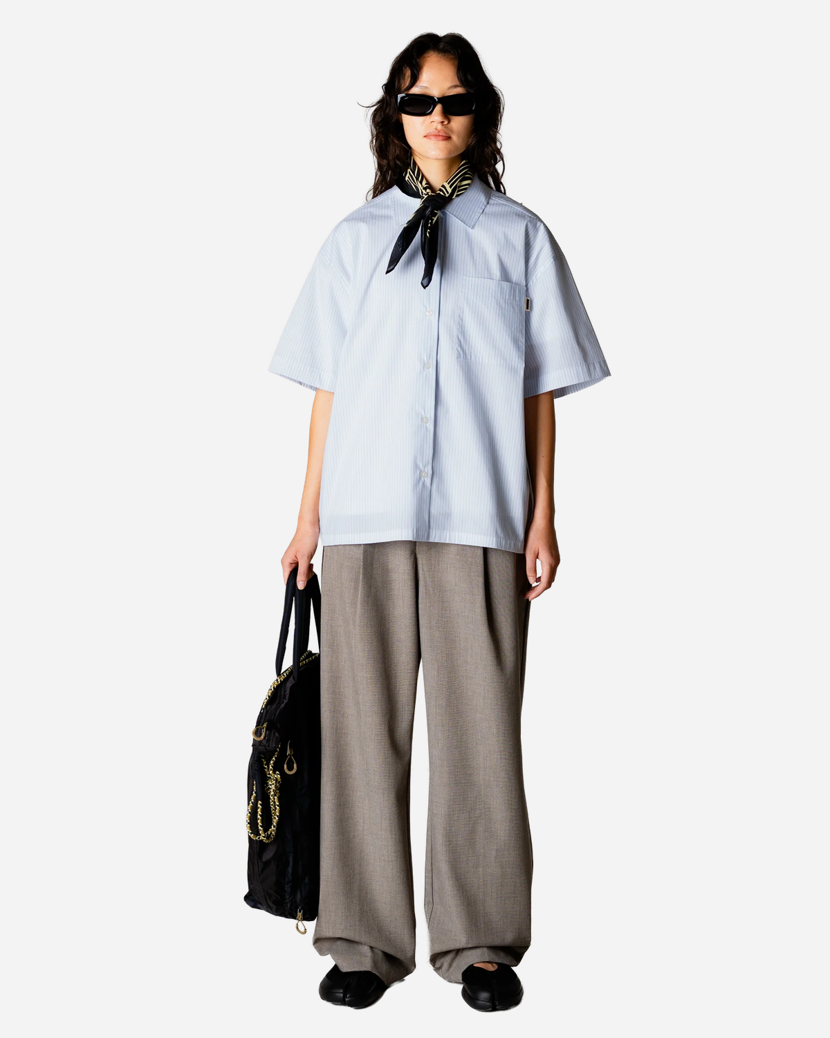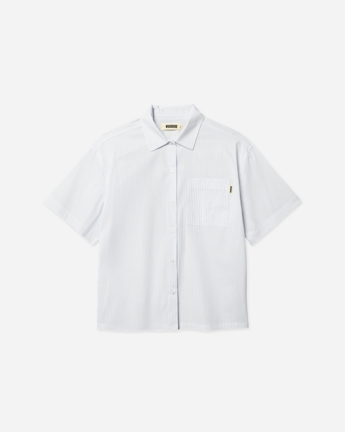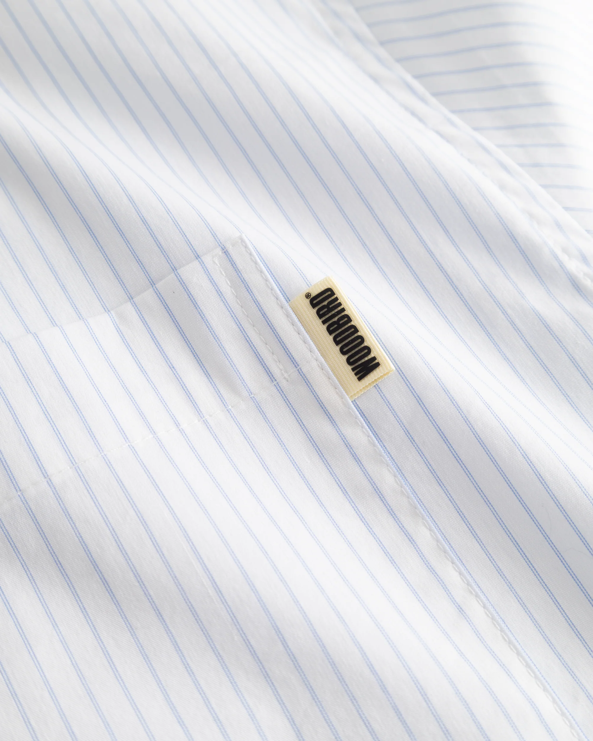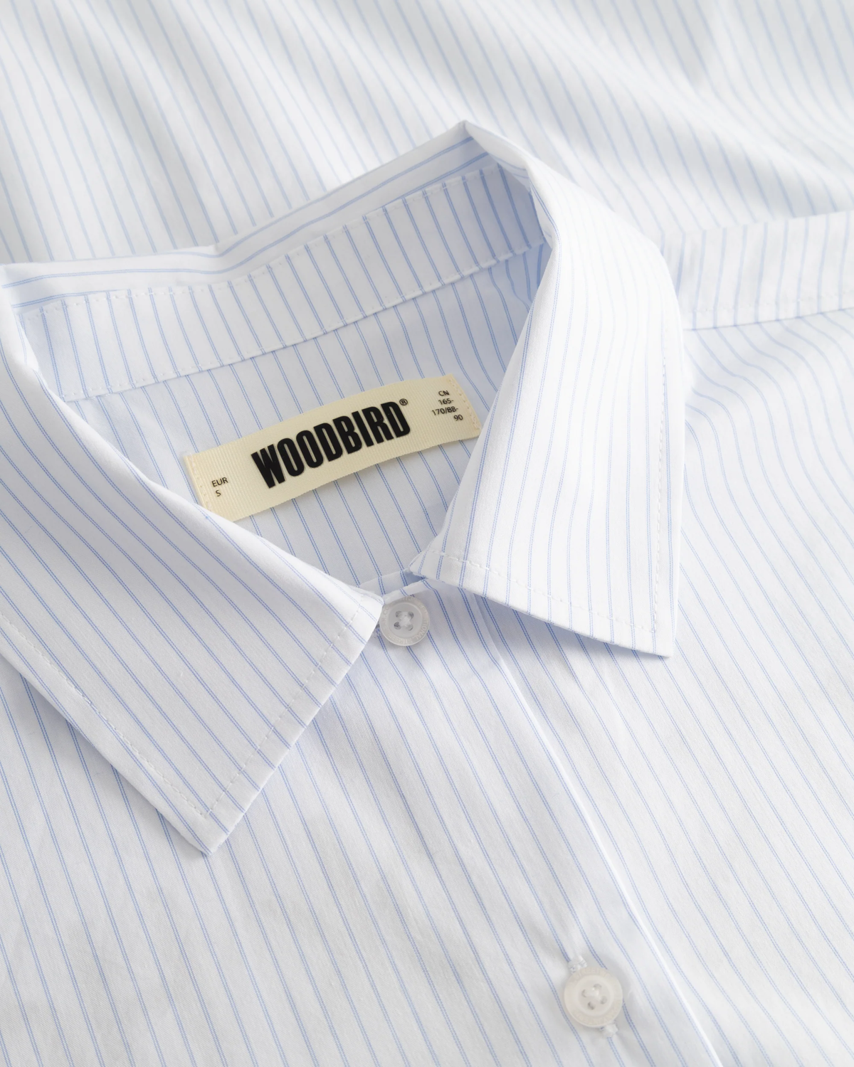 Skjorter fra Woodbird, som Luna Wok Shirt - Blue Stripe, deler samme gennemførte tilgang som Wbtom, så du kan bygge en sikker base med få styles, der klæder hinanden på kryds og tværs.