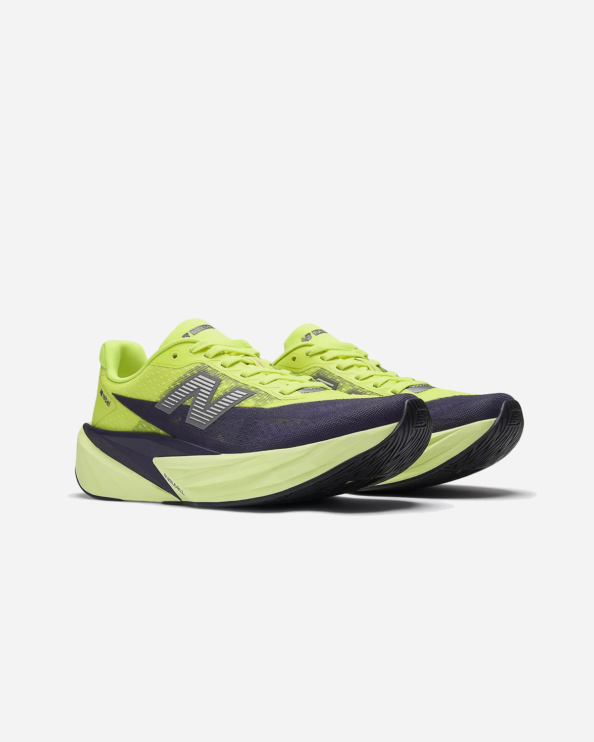 New Balance WFCXV5 Rebel V5 Women - Alkaline Green Boysenberry er en løbesko, der er lavet til fart, men fungerer lige så godt på rolige kilometer. FuelCell-skum i mellemsålen kombineret med en PEBA/EVA-blanding og en gennemtænkt geometri giver en elastisk, let og fremdrivende fornemmelse under foden. Du får hurtig respons ved tempo og fin komfort, når turen bliver lang.