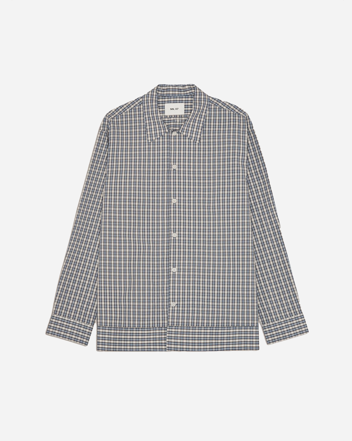NN07 Reed 5322 - Blue Check er en overshirt, der ligger lige mellem jakke og skjorte. Den er syet i blød, glat bomuldspoplin, som føles let. Pasformen er relaxed, så Reed 5322 er nem at smide over en tee eller en af dine Skjorter, og den fungerer både åben og lukket. Sidelommerne i sidesømmen giver hverdagspraktik, og fronten er afsluttet med NN07 logo-knapper for et rent, roligt look. Blue Check er et diskret tern, der spiller godt med jeans, chinos og resten af garderoben. Et stærkt valg til dig, der i forvejen går efter NN07 og gerne vil have noget i samme linje som dine favorit Skjorter.