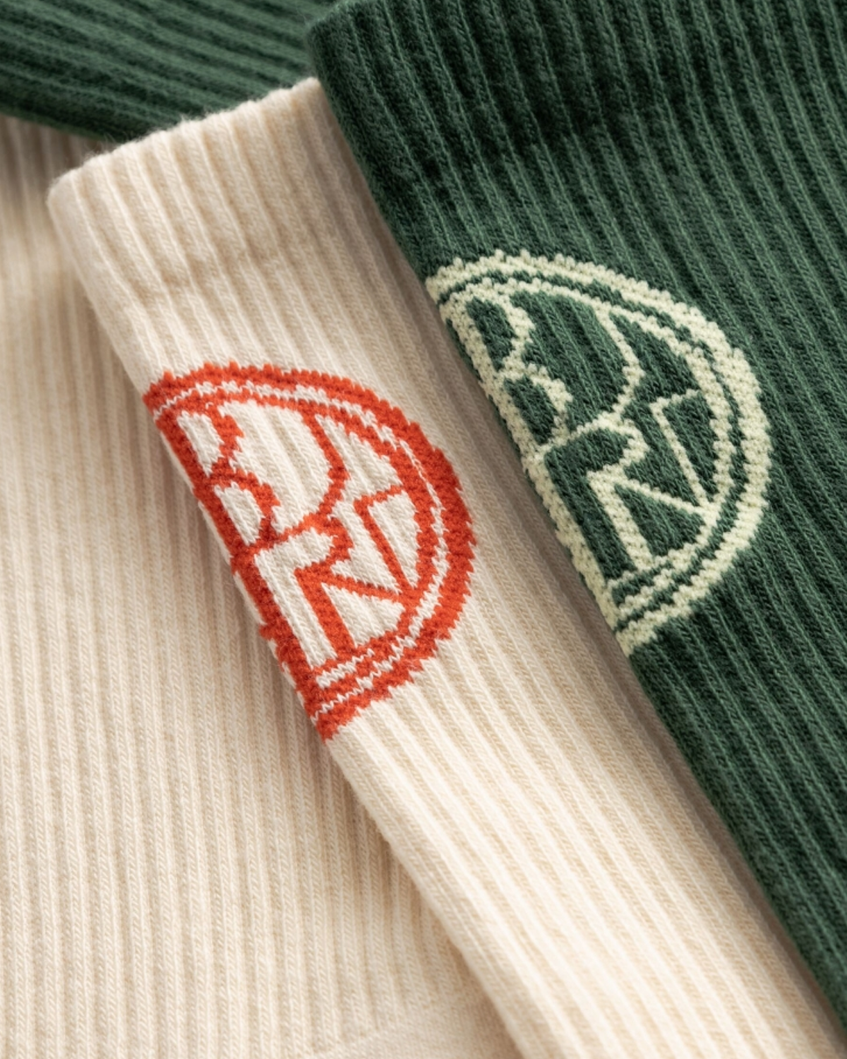 Woodbird Tennis Stamp Socks 2 pack - Pine Green / Off White giver et rent og sporty take til hverdagen. Strikket i 70% økologisk bomuld, 27% polyamid og 3% elastan for en blød fornemmelse, god holdbarhed og en pasform der bliver, hvor den skal. Ribkant ved skaftet og et enkelt Tennis Stamp-logo gør dem nemme at bruge i både sneakers og støvler.