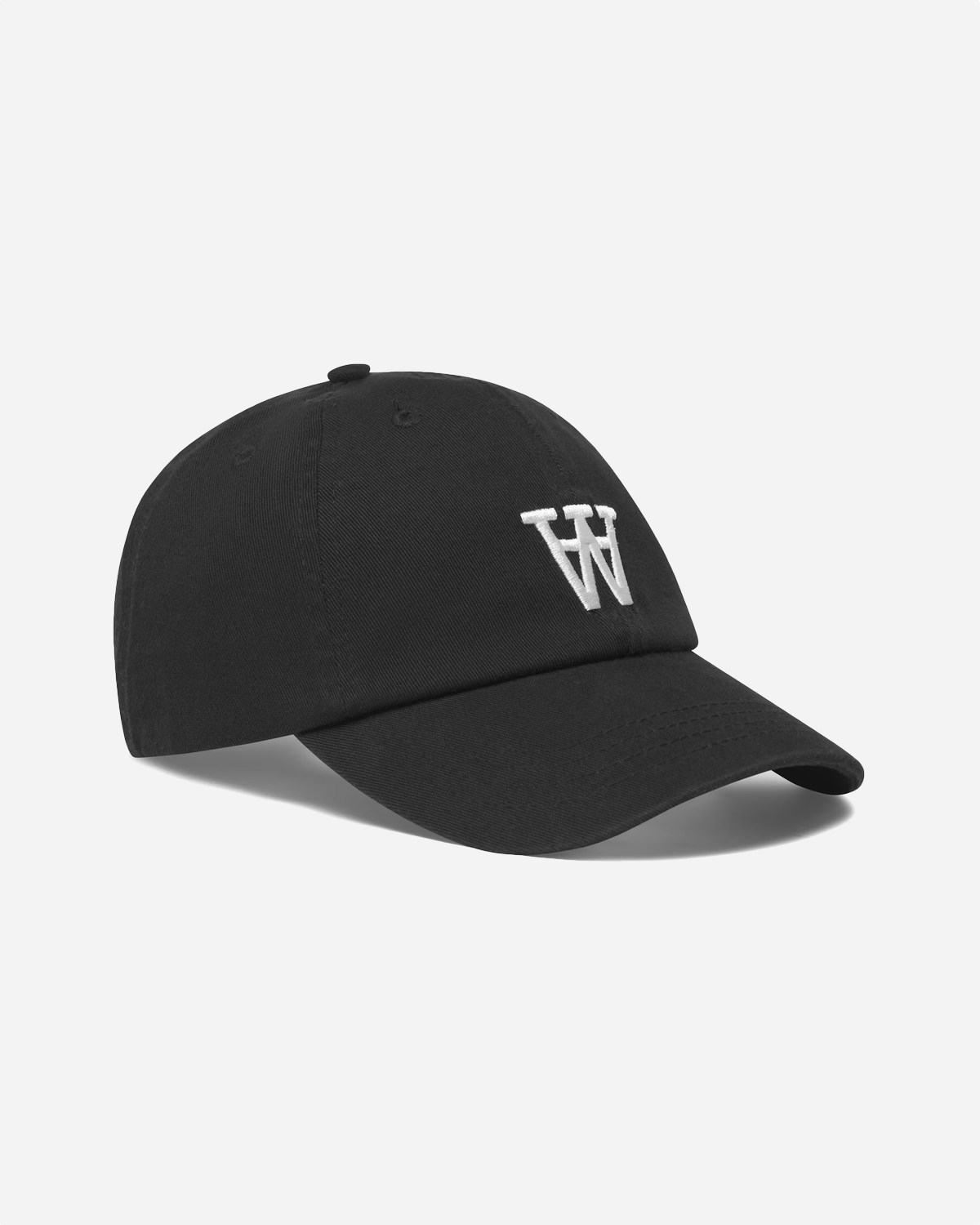 WWEli - Black fra Wood Wood er en sort baseballcap i 100 procent bomuld med struktureret krone og buet skygge. Det kontrastbroderede Wood Wood logo og de tydelige panelstikninger giver et sporty look, og de tonale ventilationshuller holder det rent og simpelt. Bagsiden kan justeres, så den sidder behageligt som one size på de fleste.