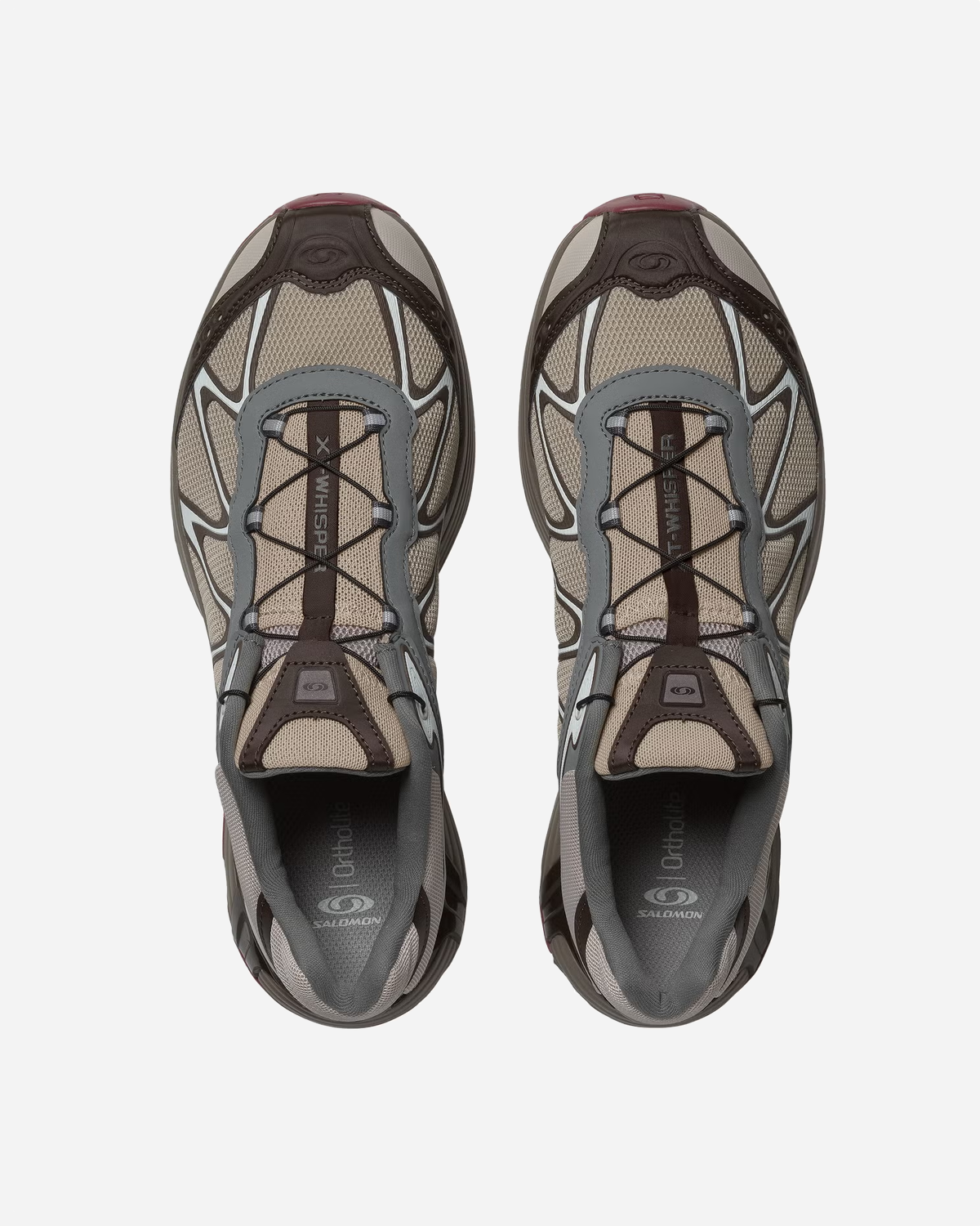 Overdelen er lavet i åndbar mesh med TPU-overlæg og varmeforseglede kontrastdetaljer, som giver let støtte uden at blive tung. En polstret krave og gummiforstærket tåkappe giver ekstra beskyttelse, så XT-WHISPER fungerer både i byen og på stierne. Salomons quickLACE strammes med ét træk og giver en hurtig, præcis pasform.